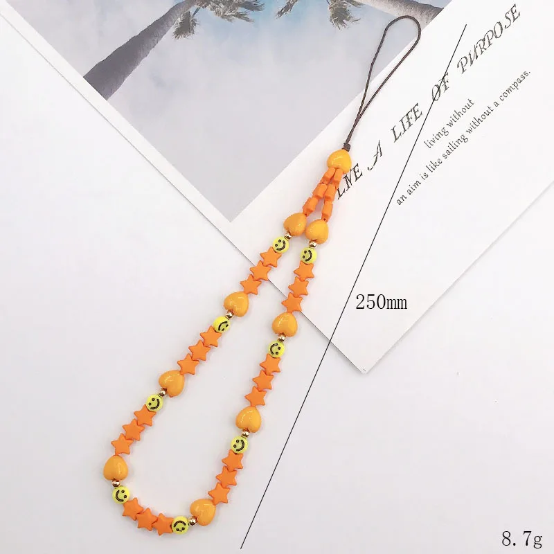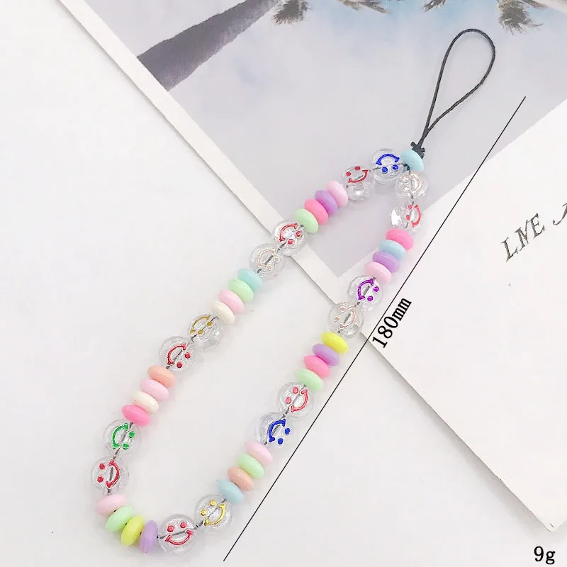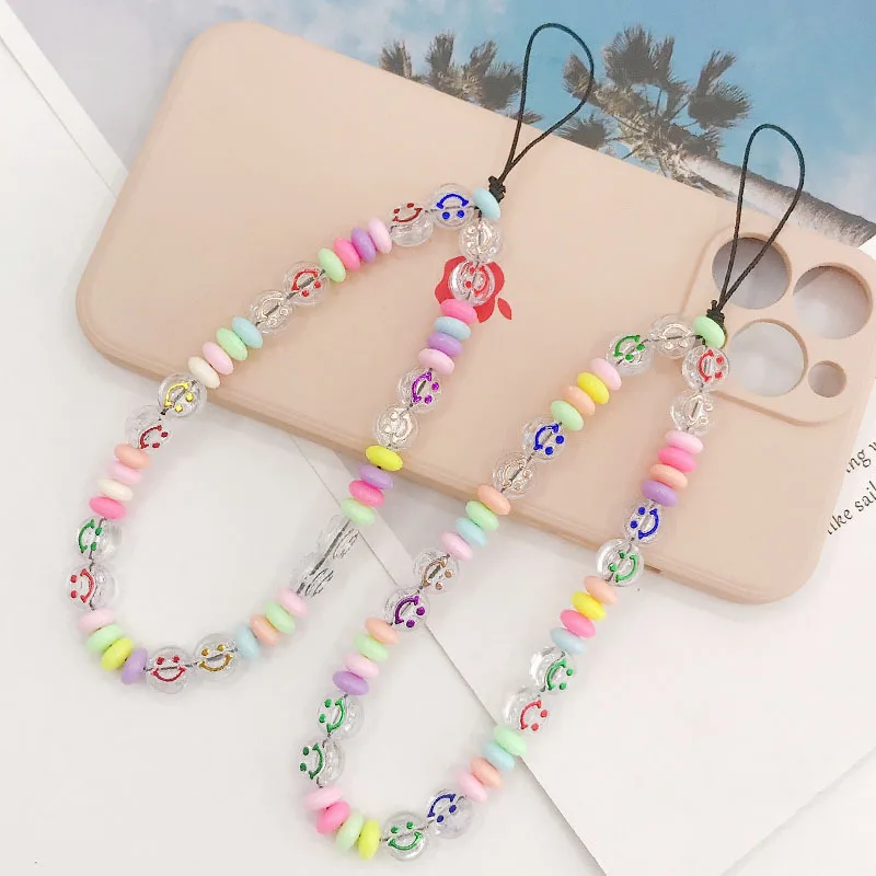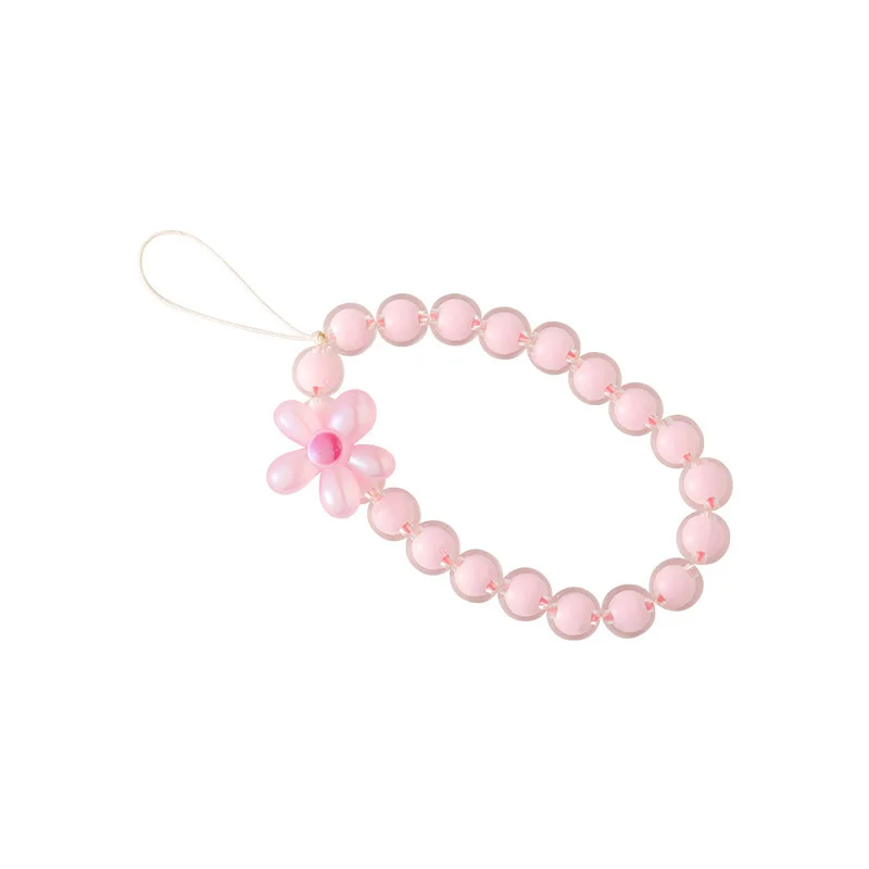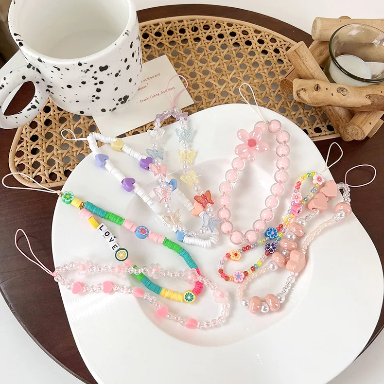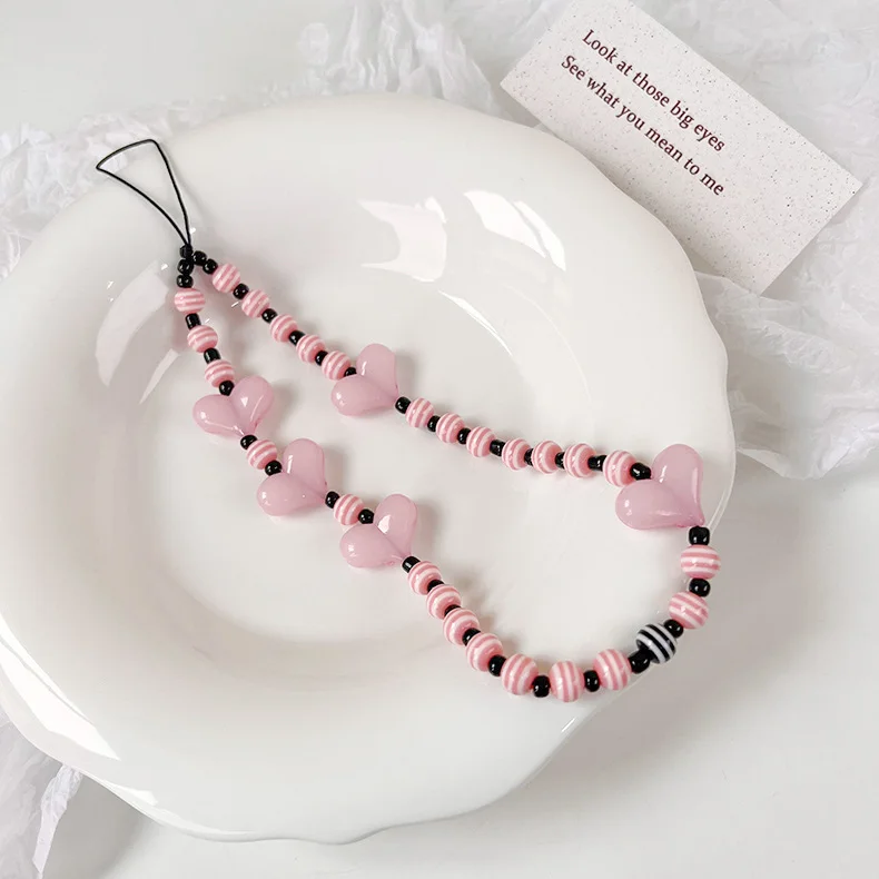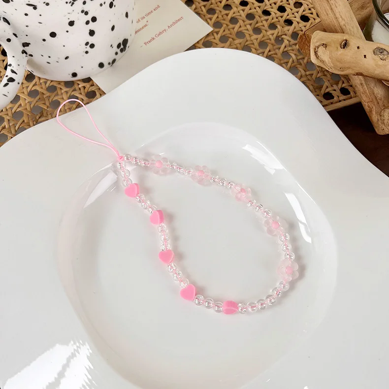 New Pink Acrylic Heart Beads Phone Chain Lanyard Jewelry for Women Vintage Devil Eye Flower Charm Phone Case Strap Accessories